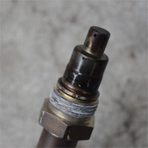 センサー先端部を見てみると、当然ながら煤まみれなのだが、濡れている感。ふき取ってみるとてかりは消えた。水かな?