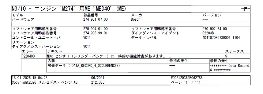 あとはXENTRY DASでメモリをクリアすればOK。