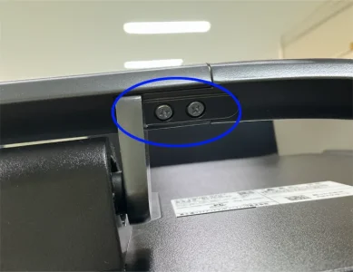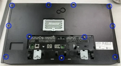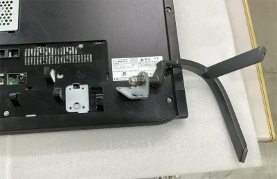 モニターには必ず足がついている。重い本体を支えなければならないため、強固なつくりになっている。まず、これを外さないとその下にあるねじが外せない。